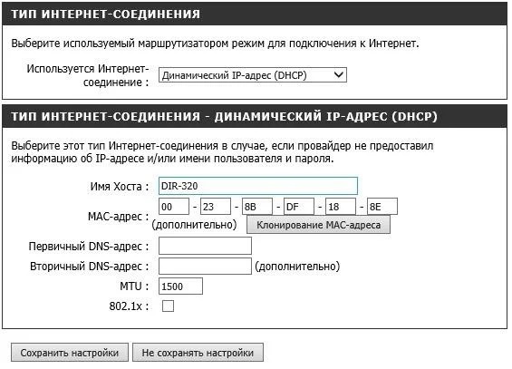 4. В главном меню нажать «Настройка Интернет-соединения вручную». В разделе «Используется Интернет-соединение» выбрать «Динамический IP (DHCP)» и нажать «Сохранить настройки».
