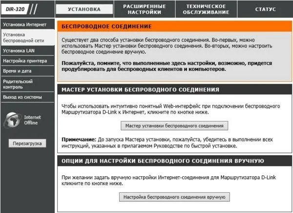 5. Теперь нам необходимо на роутере настроить wi-fi. В главном меню роутера, требуется перейти в раздел «Установка беспроводной сети». Далее нажать «Настройка беспроводного соединения вручную».