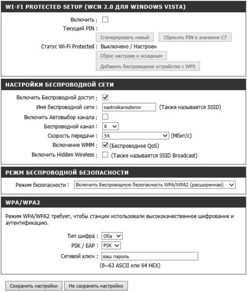 В графе «Режим безопасности» установить «Включить Беспр.безопасность WPA/WPA2»